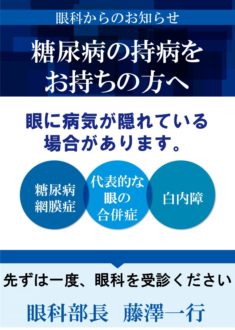 糖尿病や高血圧の持病をお持ちの方は目に病気が隠れている可能性があります。