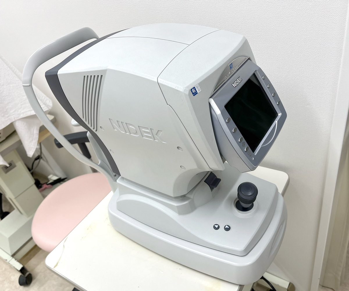 診察台にカメラがあり、患者様の目を写しての病気の説明や記録のために使用しています。